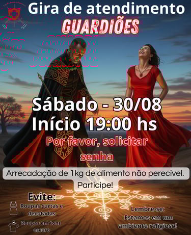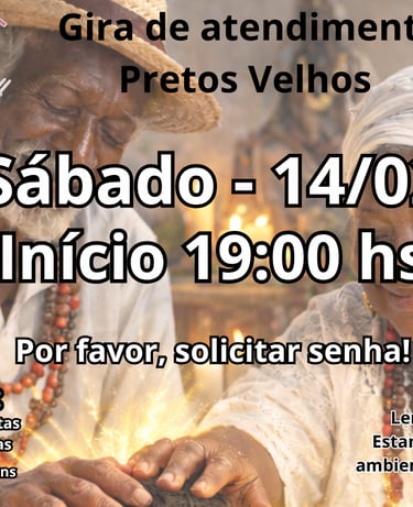 Nossos atendimentos são momentos de acolhimento, cura e orientação. Oferecemos ajuda para questões espirituais e emocionais. Agende seu atendimento e permita-se vivenciar a força e o amparo da Umbanda em sua vida.