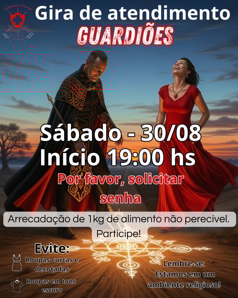 Na Tenda de Umbanda Fé, Amor e Caridade, nossa missão é fortalecer a espiritualidade, promover a união e oferecer acolhimento a todos que buscam amparo e evolução espiritual. Atuamos no Japão, preservando a essência da Umbanda com respeito, amor e dedicação. Nosso espaço é um ponto de luz, onde cada pessoa é recebida com carinho e onde a fé se transforma em força para o dia a dia. Aqui, cultivamos um ambiente harmonioso, propício para o crescimento interior, a prática da caridade e a vivência do amor em sua forma mais verdadeira.